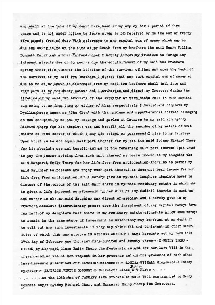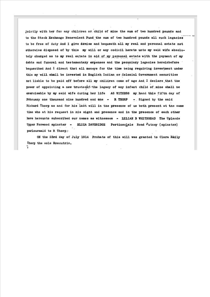Appendix K. Wills of Richard Thorp, 1830-1914 and Emily Thorp, 1867-1923 The Will of his widow, Clara Emily Thorp, 1867-1923, follows.