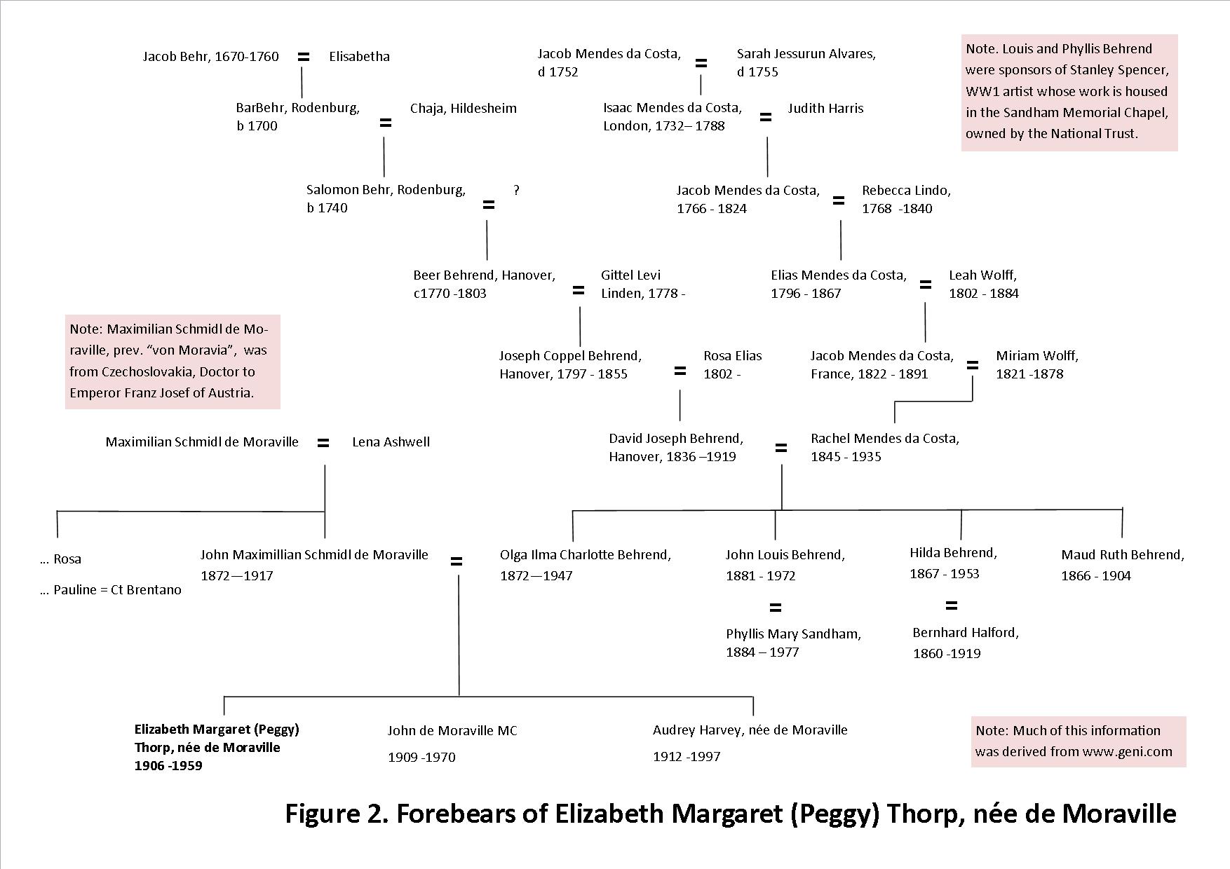 Figure 2. Forebears of Elizabeth Margaret (Peggy) Thorp, née de Moraville