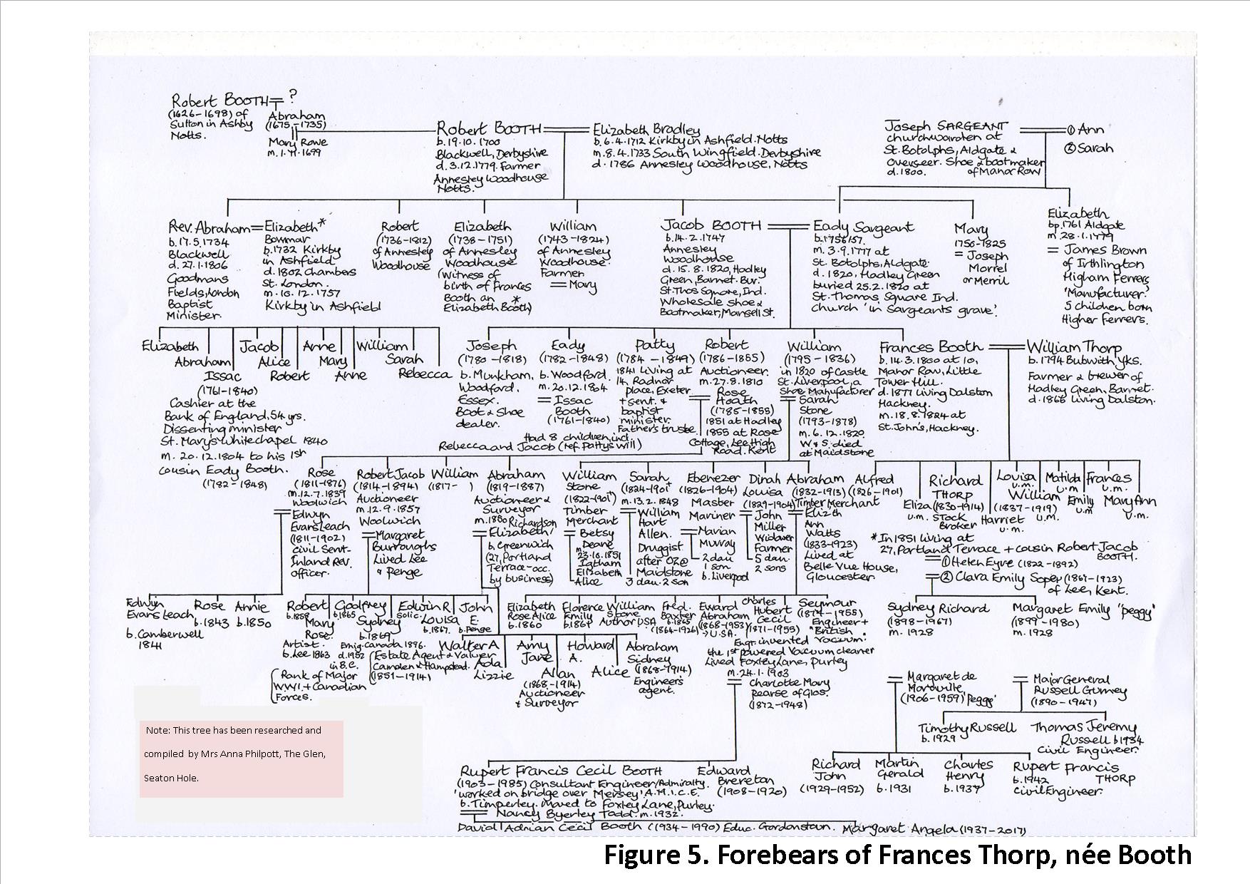 Figure 5. Forebears of Frances Thorp, née Booth,